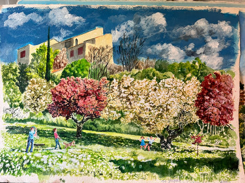 Welcome to the artistic world of Dermot Lynch, born in 1945 in the city of Dublin, Ireland. Since his early years, Dermot has been passionately drawing and painting, capturing the essence of his experiences and his travels across France. On this site, you will find a diverse selection of his artwork, including watercolour, oil on canvas, pen and ink, and pencil creations, along with captivating stories from the Irish Civil War. Dermot also delights in singing and playing the guitar, accompanied by his wife Yvonne, his number one fan. We hope you enjoy exploring his artistic journey. Feel free to contact Dermot if you are interested in purchasing his art or hearing more about his tales of growing up in Ireland.